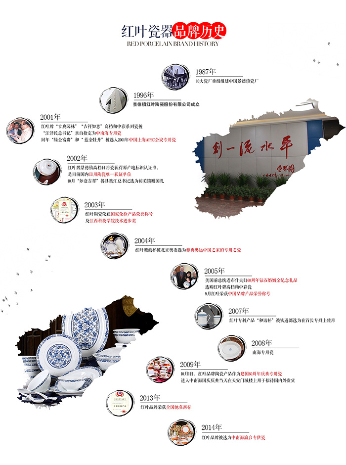 公司于2002年通過ISO9001:2000國際質量體系認證,為拓展國際市場奠定基礎。"紅葉"牌高檔細瓷取得了國家質量監(jiān)督檢驗檢疫總局頒發(fā)的原產地標記注冊證書。